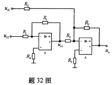 由理想运算放大器组成的电路如题 32图所示。要求: (1)写出 uO1与输入电压 Ui1、Ui2之间的关系式; (2)写出 uO 作者:高老师 时间:2024-08-04 浏览 0 由理想运算放大器组成的电路如题 32图所示。要求: (1)写出 uO1与输入电压 Ui1、Ui2之间的关系式; (2)写出 uO与输入电压 Ui1、 Ui2之间的关系式。 【正确答案】: 📱 扫码体验刷题小程序 扫一扫使用我们的微信小程序
