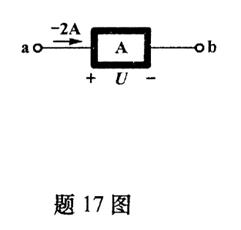 如题17图所示,若已知元件A吸收功率20W,则电压U为________________V。 作者:高老师 时间:2024-08-04 浏览 0 如题17图所示,若已知元件A吸收功率20W,则电压U为________________V。 【正确答案】:-10【题目解析】:因为电压与电流为关联参考方向,P=UI=U*(-2) 又因为吸收功率所以P>0,得 20=U×(-2) U=-10V 📱 扫码体验刷题小程序 扫一扫使用我们的微信小程序