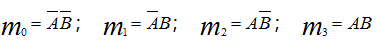 写出二输入变量A, B的所有最小项。