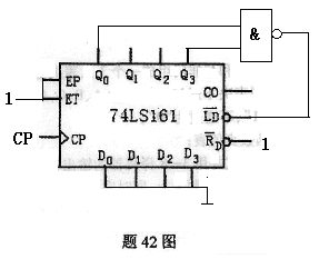 74LSl61为四位二进制加法计数器,真值表如题42表所示,试用74LSl61和与非门设计一个十进制计数器。(要求利用同步置数端,计数器从0000状态开始计数) 要求:(1)写出S对应的二进制代码; (2)写出反馈置数的函数表达式; (3)请将题42图绘制在答题卡上,同时完成题42图中逻辑图连线,并在各输入输出端标上连接信号。