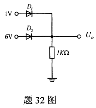 二极管电路如题32图所示,已知二极管为理想器件。 要求: (1)判断D1和D2的工作状态; (2)计算U0的值; (3)计算lkQ电阻上流过的电流值。