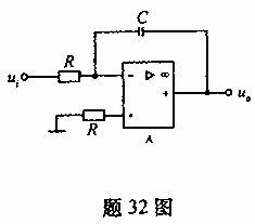 由理想集成运放组成的积分器电路如题32图所示,设运算放大器的饱和电压为±12V,Uˇi=1V,R=500KΩ,C=0.2μF 。要求: