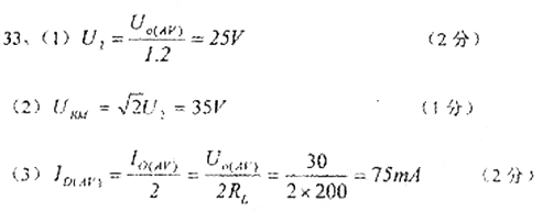 单相桥式整流电路如题33图所示,已知输出电压平均值