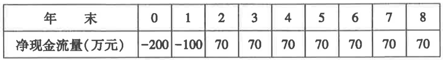 【正确答案】:解:NPV=-200-100(P/F,12%,1)+70(P/A,12%,7)×(P/F,12%,1)=-4.04(万元)(5分)