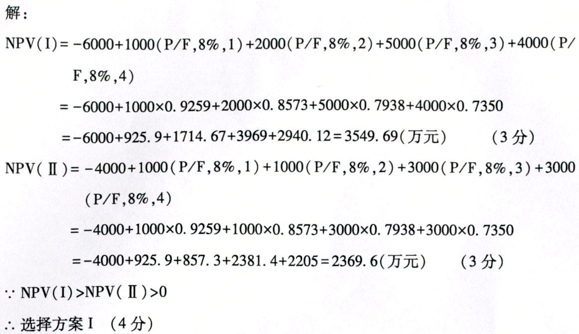 现有两互斥方案,其净现金流量如下表所示。设基准收益率为8%。试用净现值评价方案。 作者:高老师 时间:2024-08-04 浏览 2 现有两互斥方案,其净现金流量如下表所示。设基准收益率为8%。试用净现值评价方案。【正确答案】: 📱 扫码体验刷题小程序 扫一扫使用我们的微信小程序