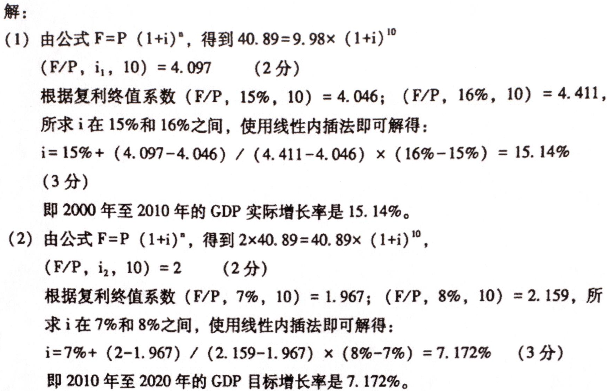 在我国国民经济和社会发展“十二五”规划纲要和2020年远景目标中提出,到2020年我国国民生产总值(GDP)在2010年40.8 作者:高老师 时间:2024-08-04 浏览 2 在我国国民经济和社会发展“十二五”规划纲要和2020年远景目标中提出,到2020年我国国民生产总值(GDP)在2010年40.89万亿元的基础上翻一番。而2000年的GDP是9.98万亿。请计算:(1)2000年至2010年的GDP实际增长率是多少?(2)2010年至2020年的GDP预期增长率是多少?附:复利终值系数(F/P,7%,10)=1.967;(F/P,8%,10)=2.159(F/P,15%,10)=4.046;(F/P,16%,10)=4.411【正确答案】: 📱 扫码体验刷题小程序 扫一扫使用我们的微信小程序