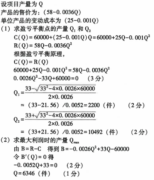 某项目投产以后,年固定成本为60000元,单位产品变动成本为25元。由于原材料整批购买,每多生产一件产品,单位变动成本可降低0. 作者:高老师 时间:2024-08-04 浏览 3 某项目投产以后,年固定成本为60000元,单位产品变动成本为25元。由于原材料整批购买,每多生产一件产品,单位变动成本可降低0.001元。售价为58元,销量每增加一件产品,售价下降0.0036元。试求盈亏平衡点及最大利润时的产量。(附:√465=21.56)【正确答案】: 📱 扫码体验刷题小程序 扫一扫使用我们的微信小程序