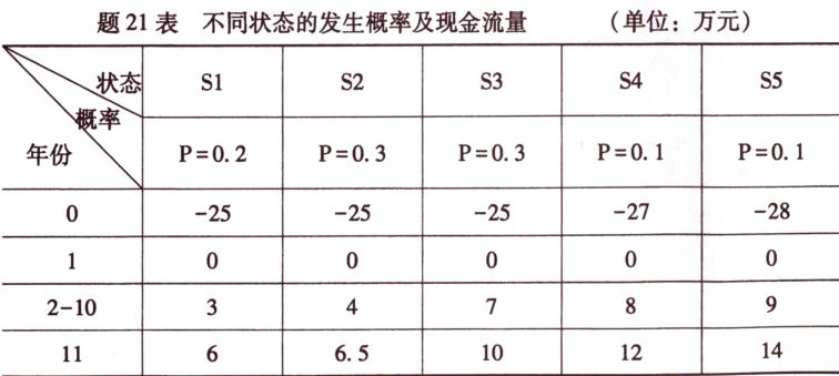 E(NPV)=NPV(1)×0.2+NPV(2)×0.3+NPV(3)×0.3+NPV(4)×0.1×NPV(5)×0.1=10.64(5分)