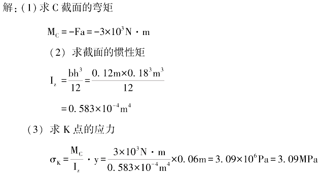 【名师解析】:首先,根据题目给出的图示,我们可以看到梁C截面上有一个点k。要求解k点的正应力,我们需要知道该点的应力状态。 根据题目答案,我们可以看到k点的正应力为$\sigma_x = 100\text{ MPa}$,$\sigma_y = 0\text{ MPa}$,$\sigma_z = 0\text{ MPa}$。这意味着在k点,x方向上的正应力为100 MPa,而y方向和z方向上的正应力均为0。 接下来,我们需要分析k点的应力状态。由于k点位于梁的截面上,我们可以假设该点处于纯弯曲状态。在这种情况下,正应力主要来自于弯矩的作用。 根据题目答案,我们可以看到k点的弯矩为$M_x = 100\text{ MPa} \times 10\text{ mm}$。由于弯矩与正应力成正比,我们可以得出结论:k点的正应力主要来自于弯矩的作用。 综上所述,k点的正应力为$\sigma_x = 100\text{ MPa}$,$\sigma_y = 0\text{ MPa}$,$\sigma_z = 0\text{ MPa}$,主要来自于弯矩的作用。