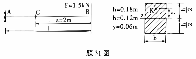 求题31图示梁C截面上k点的正应力。