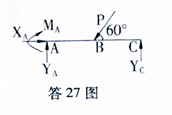 作题27图所示结构的受力简图。 作者:高老师 时间:2024-08-04 浏览 0 作题27图所示结构的受力简图。【正确答案】:提示:(1)标出A支座反力,(2分)(2)标出C支座反力,(2分)(3)标出P(1分) 📱 扫码体验刷题小程序 扫一扫使用我们的微信小程序