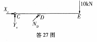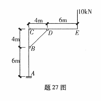 作题27图示结构杆件CDE的计算简图。 作者:高老师 时间:2024-08-04 浏览 1 作题27图示结构杆件CDE的计算简图。【正确答案】:提示:(1)标出C支座反力,(2分)(2)标出D支座反力,(2分)(3)标出外力。(1分) 📱 扫码体验刷题小程序 扫一扫使用我们的微信小程序