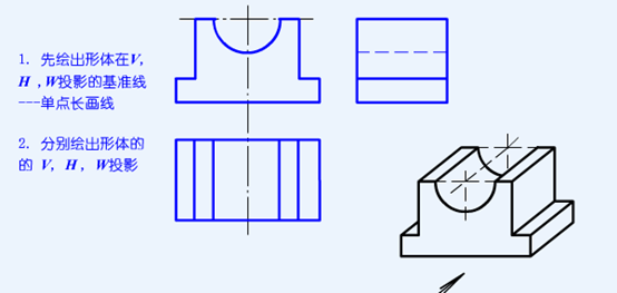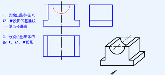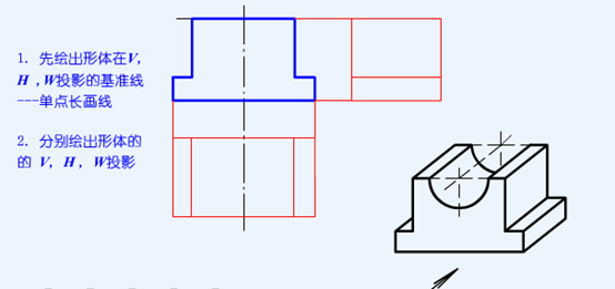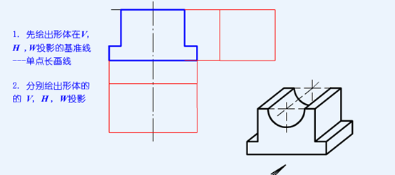 根据模型及V投影,补绘形体的H、W投影