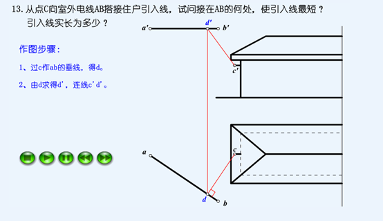 从点C向室外电线AB搭接住户引入线CD,试问点D在AB的何处可使引入线最短?并作出引入线CD的实长 作者:高老师 时间:2024-08-04 浏览 2 从点C向室外电线AB搭接住户引入线CD,试问点D在AB的何处可使引入线最短?并作出引入线CD的实长【正确答案】: 📱 扫码体验刷题小程序 扫一扫使用我们的微信小程序