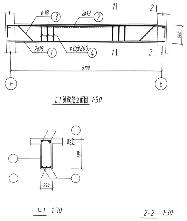 已知梁L1的配筋立面图及1-1断面图,试补充以下内容。(1)在“1-1”断面图中注出相应的钢筋编号;(2)画出“2-2”断面图。 作者:高老师 时间:2024-08-04 浏览 1 已知梁L1的配筋立面图及1-1断面图,试补充以下内容。(1)在“1-1”断面图中注出相应的钢筋编号;(2)画出“2-2”断面图。【正确答案】:评分标准:(1)标注 1-1 断面图中的钢筋编号 8 分; (2)2-2 断面图 8 分; 📱 扫码体验刷题小程序 扫一扫使用我们的微信小程序