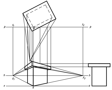 作物体的两点透视。 作者:高老师 时间:2024-08-04 浏览 0 作物体的两点透视。【正确答案】:评分标准: (1)作出灭点 f 1、f 2 、F1、F 2 得 2 分; (2)作出基透视 2 分; (3)做出真高线并画出与灭点的连接线 2 分; (4)画出透视图 2 分; (5)描粗透视图 2 分。 📱 扫码体验刷题小程序 扫一扫使用我们的微信小程序