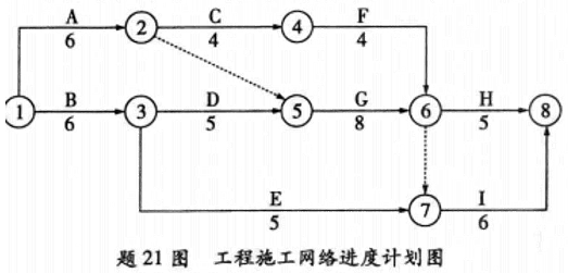 某建设单位与某施工单位签订了某工程项目的施工合同。合同规定,采用单价合同,每一分项工程的工程量增减量超过10%时,需调整工程单价。合同工期为25天。工期每提前一天奖励8000元,每拖后一天罚款10000元。施工单位在开工前及时提交了施工网络进度计划,如下图,并得到建设单位代表的批准。