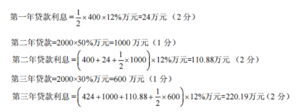 第一年贷款=2000×20%万元=400 万元