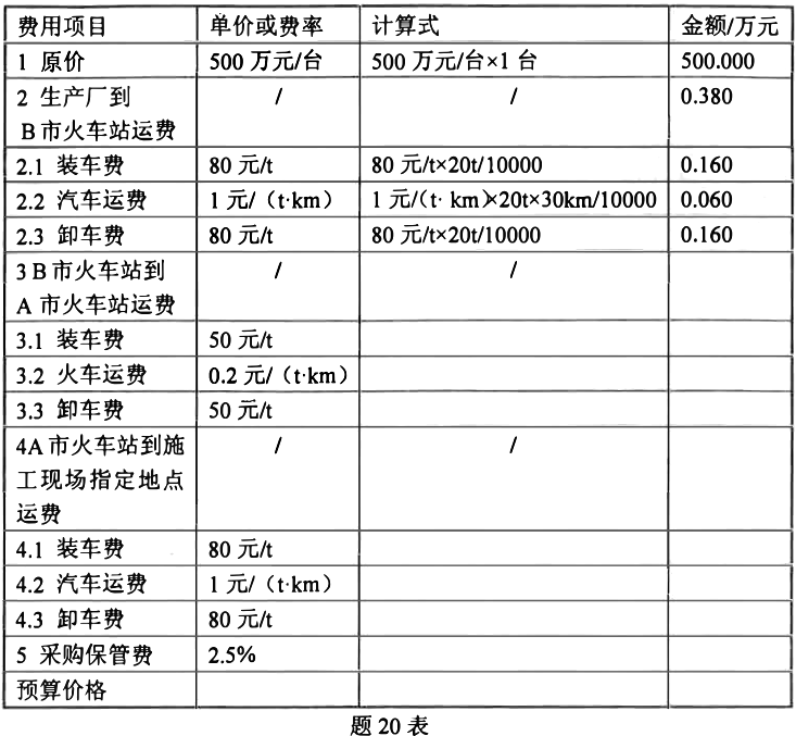 ⑤A市火车站到施工现场指定地点20km为汽车运输;