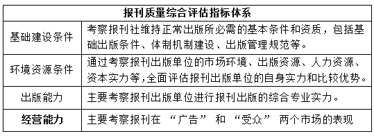 我国报刊质量综合评估体系分四个方面,它们是基础建设条件、环境资源条件、出版能力和( )