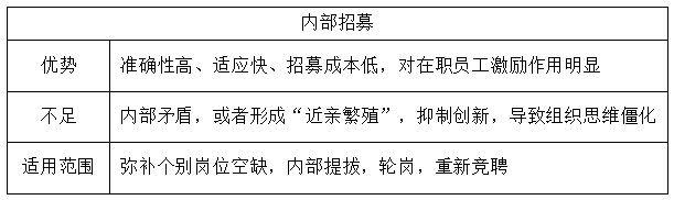本题考查内部招募的特点。考生可从其优势、不足两方面进行识记。