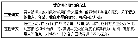 关于受众的收入、年龄、教育水平的研究,可采用( ) 作者:高老师 时间:2024-08-05 浏览 0 关于受众的收入、年龄、教育水平的研究,可采用( )A、定量研究B、定性研究C、历史研究D、行动研究【正确答案】:A【题目解析】:本题考查受众调查研究的方法——定量研究。CD项是干扰项,排除。故选A。 📱 扫码体验刷题小程序 扫一扫使用我们的微信小程序