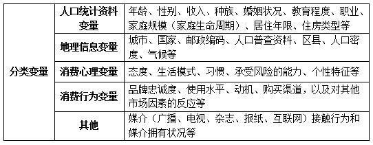 市场调查得到的信息可分为分类变量和关键性描述变量,其中分类变量主要包括哪几个方面?