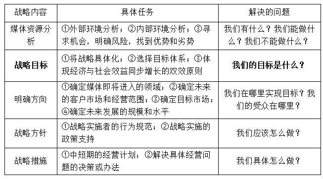 解决“我们的目标是什么”这一问题涉及媒体经营战略的哪一项内容?( ) 作者:高老师 时间:2024-08-05 浏览 0 解决“我们的目标是什么”这一问题涉及媒体经营战略的哪一项内容?( )A、资源分析B、战略目标C、战略方针D、明确方向【正确答案】:B【题目解析】:本题考查媒体经营战略中战略目标的内容。考生需理解并识记。故选B。 📱 扫码体验刷题小程序 扫一扫使用我们的微信小程序