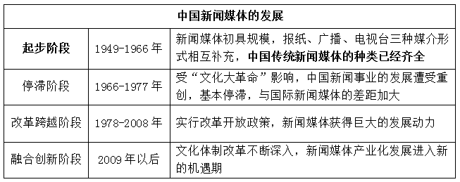 新中国媒体发展可以分为四个阶段,我国传统新闻媒体种类齐全始于( )