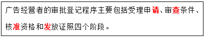 广告经营者的审批登记程序主要包括下列哪些阶段( ) 作者:高老师 时间:2024-08-06 浏览 1 广告经营者的审批登记程序主要包括下列哪些阶段( )A、受理申请B、审查条件C、研讨交流D、核准资格E、发放证照【正确答案】:ABDE【题目解析】:助记:准发清茶——准发清(请)茶(查)。故本题正确答案为:ABDE 📱 扫码体验刷题小程序 扫一扫使用我们的微信小程序