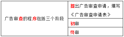 广告审查的程序包括三个阶段:提出广告审查申请,填写《广告审查申请表》、( )、终审。 作者:高老师 时间:2024-08-06 浏览 0 广告审查的程序包括三个阶段:提出广告审查申请,填写《广告审查申请表》、( )、终审。【正确答案】:初审【题目解析】:助记:插叙提初衷——插(查)叙(序)提初衷(终)。 📱 扫码体验刷题小程序 扫一扫使用我们的微信小程序