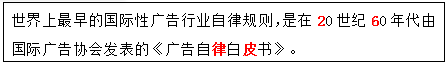 世界上最早的国际性广告行业自律规则,是在20世纪60年代由国际广告协会发表的()。