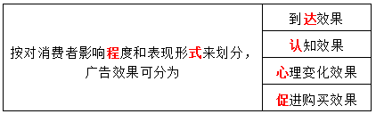 按对消费者的影响程度和表现形式来划分,广告效果可分为到达效果、认知效果、( )、促进购买效果。 作者:高老师 时间:2024-08-06 浏览 0 按对消费者的影响程度和表现形式来划分,广告效果可分为到达效果、认知效果、( )、促进购买效果。 【正确答案】:心理变化效果【题目解析】:助记:城市大人粗心——城(程)市(式)大(达)人(认)粗(促)心。 📱 扫码体验刷题小程序 扫一扫使用我们的微信小程序