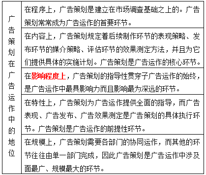 广告策划在广告运作中地位重大,其中(),广告策划的指导性贯穿于广告运作的始终,是广告运作中最具影响力而且影响最为深远的环节。