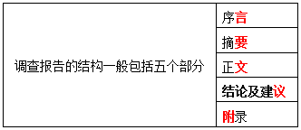 调查报告的结构一般包括序言、摘要、正文、( )、附录五个部分。 作者:高老师 时间:2024-08-06 浏览 0 调查报告的结构一般包括序言、摘要、正文、( )、附录五个部分。【正确答案】:结论及建议【题目解析】:助记:硬要问衣服——硬(言)要问(文)衣(议)服(附)。 📱 扫码体验刷题小程序 扫一扫使用我们的微信小程序