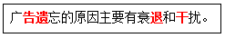 广告遗忘的原因主要有衰退和( )。 作者:高老师 时间:2024-08-06 浏览 0 广告遗忘的原因主要有衰退和( )。【正确答案】:干扰【题目解析】:助记:高一推杆——高(告)一(遗)推(退)杆(干)。 📱 扫码体验刷题小程序 扫一扫使用我们的微信小程序