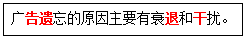 下列属于广告遗忘的原因的是() 作者:高老师 时间:2024-08-06 浏览 0 下列属于广告遗忘的原因的是()A、衰退B、时间长 C、厌恶D、环境【正确答案】:A【题目解析】:考生需识记本知识点。助记:高一推杆——高(告)一(遗)推(退)杆(干)。故本题正确答案为:A 📱 扫码体验刷题小程序 扫一扫使用我们的微信小程序