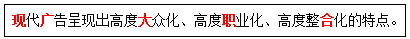 ( )呈现出高度大众化、高度职业化、高度整合化的特点。 作者:高老师 时间:2024-08-06 浏览 0 ( )呈现出高度大众化、高度职业化、高度整合化的特点。【正确答案】:现代广告【题目解析】:助记:先逛大纸盒——先(现)逛(广)大纸(职)盒(合)。 📱 扫码体验刷题小程序 扫一扫使用我们的微信小程序
