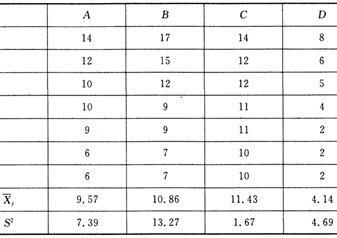 所以A、D水平之间、B、D水平之间、D、C水平之间总体平均数有显著差异,其他各对平均数之间均无显著差异。