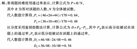 某年级178人参加英语考试,其中两道选择题的答题情况如题22表所示。请计算这两道题的难度和区分度。(计算结果保留两位小数) 作者:高老师 时间:2024-08-06 浏览 0 某年级178人参加英语考试,其中两道选择题的答题情况如题22表所示。请计算这两道题的难度和区分度。(计算结果保留两位小数)【正确答案】: 📱 扫码体验刷题小程序 扫一扫使用我们的微信小程序