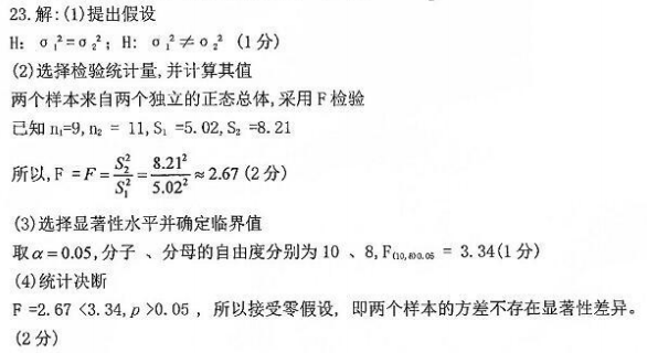 从两个独立的正态总体中,随机抽取一组数据n1=9,n2=11,两个样本的标准差分别为S1=5.02,S2=8.21。请问:在α= 作者:高老师 时间:2024-08-06 浏览 1 从两个独立的正态总体中,随机抽取一组数据n1=9,n2=11,两个样本的标准差分别为S1=5.02,S2=8.21。请问:在α=0.05的显性水平上,两个样本的方差是否齐性?(单侧检验情况下,F(10.8)0.05=3.34。计算结果保留两位小数。)【正确答案】: 📱 扫码体验刷题小程序 扫一扫使用我们的微信小程序