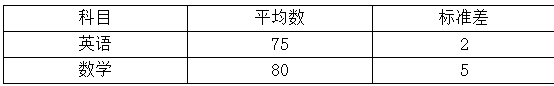 某班考试成绩情况如下表,小王的测验成绩依次是英语65分,数学85分;小李的测验成绩依次是英语85分,数学65分。计算小王和小李各科成绩的标准分数,并说明小王和小李的总成绩排名先后。