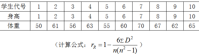 列,为等级数据,体重单位为千克),试计算二者的相关系数并判断其关系密切程度。