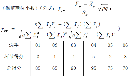 某次学校英语技能比赛中,安排了若干环节,6 名选手某环节的得分与总得分情况列于下表,计算该环节的区分度。 作者:高老师 时间:2024-08-06 浏览 1 某次学校英语技能比赛中,安排了若干环节,6 名选手某环节的得分与总得分情况列于下表,计算该环节的区分度。【正确答案】: 📱 扫码体验刷题小程序 扫一扫使用我们的微信小程序