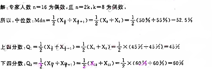 有16名专家参与“某地区2010年大学生考研率”的德尔菲预测调查,调查的第二轮结果为:40%,40%,45%,45%,45%,5 作者:高老师 时间:2024-08-06 浏览 0 有16名专家参与“某地区2010年大学生考研率”的德尔菲预测调查,调查的第二轮结果为:40%,40%,45%,45%,45%,50%,50%,50%,55%,55%,55%,60%,60%,65%,65%,65%。求它们的中位数和上下四分位数。【正确答案】: 📱 扫码体验刷题小程序 扫一扫使用我们的微信小程序