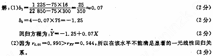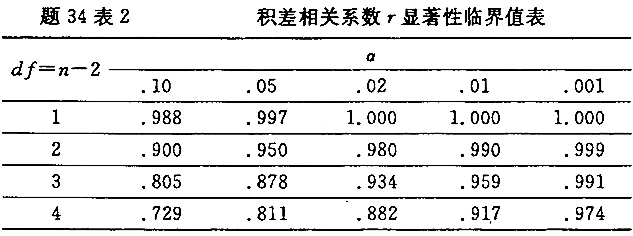 (2)从题34表1中数据算得变量X与变量Y的相关系数为下限r(下标xy)=0.944,取自由度df=n-2,在0.01水平下,问变量Y与变量X之间是否存在着显著的一元线性回归关系?