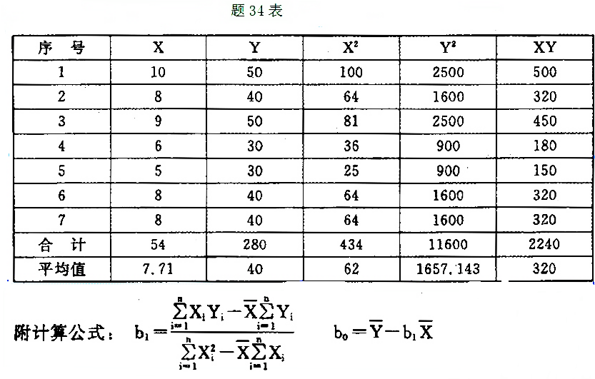 (1)根据题34表中的数据,建立变量Y关于变量X的线性回归方程(结果保留2位小数)。