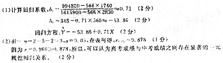 (1)根据题34-1表中的数据,建立高考成绩Y关于中考成绩X的线性回归方程。(结果保留二位小数)