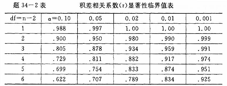 (2)根据题34-1表中数据计算出高考成绩与中考成绩的相关系数为X=0.969。试在0.05水平下分析两者是否存在显著的一元线性回归关系。