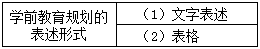 学前教育规划的表述形式一般由( )和表格两部分组成。 作者:高老师 时间:2024-08-07 浏览 8 学前教育规划的表述形式一般由( )和表格两部分组成。【正确答案】:文字表述【题目解析】:本知识点为记忆性知识点,需特殊记忆。故本题的正确答案是文字表述。 📱 扫码体验刷题小程序 扫一扫使用我们的微信小程序